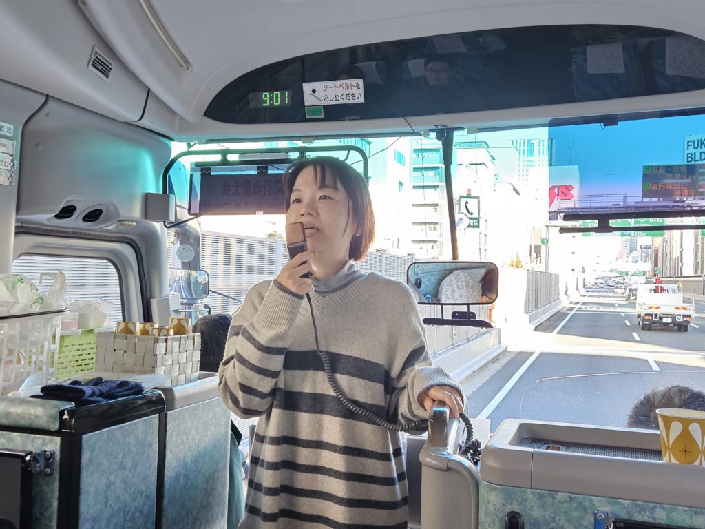 支部長よりご挨拶をいただき旅行がスタートしました。また、添乗員さんから2年連続同じ小話をお話いただき、知っている内容なのに今年の方が面白く思える不思議な内容でした。